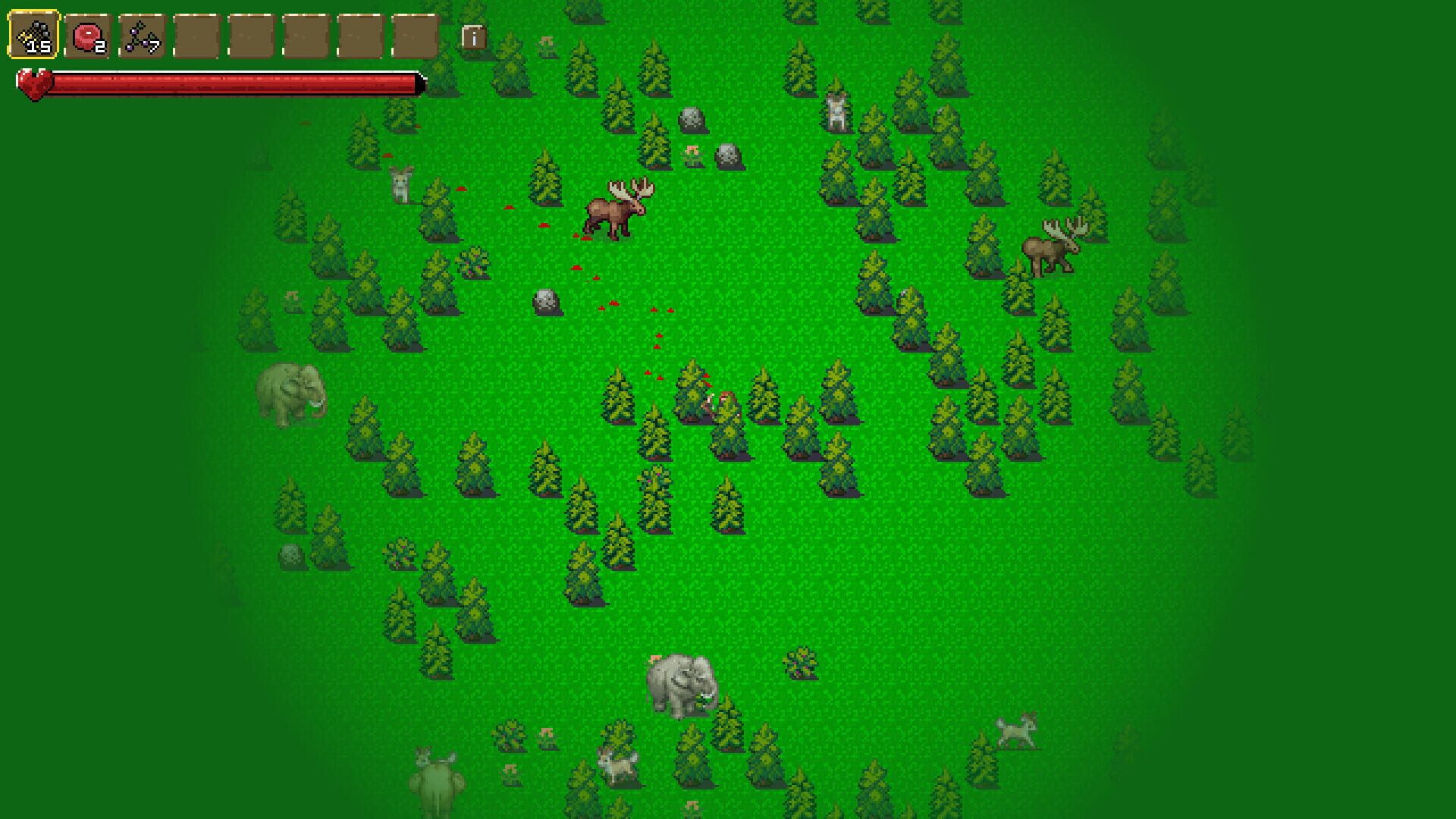 A prehistoric pixel art top-down survival-hunting roguelike with a first person shooting mechanic, where you attempt to survive in a chain of islands, to gather resources for yourself and your family, and hunt for rare trophies.