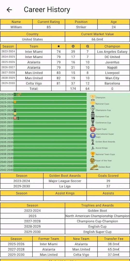 Create unique football player careers with 200 national teams, 19 leagues, 345 teams, and 12 different positions. Bundesliga, Premier League, Serie A, Ligue 1, La Liga, Primeira Liga, Eredivisie, Süper Lig, Jupiler Pro League, Scottish Premiership, Campeonato Brasileiro, Liga MX, Superliga Argentina, Swiss Super League, Ekstraklasa, Major League Soccer, Saudi Professional League, Austrian Bundesliga. Champions League, Europa League, Europa Conference League, World Cup, Copa América, AFC Asian Cup, Africa Cup of Nations, CONCACAF Gold Cup, UEFA European Championship, Ballon d'Or, Golden Shoe.