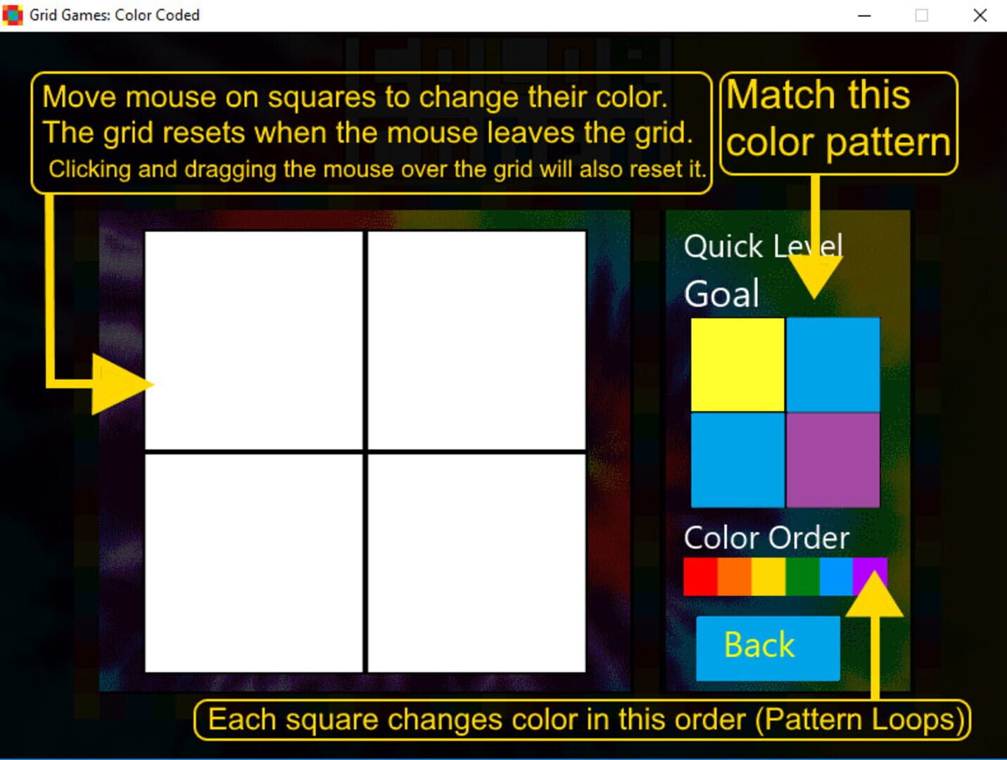 Grid Games: Color Coded is a progressive puzzle solving game where you have to match the tiles with the colors from the illustration shown in the level. The colors are arranged in an order of sequence making it a fun and strategic challenge to navigate your mouse across each of the tiles.