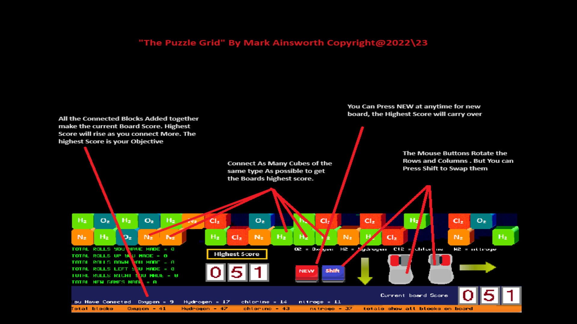 A Casual But Challenging Puzzle Grid. Roll and Rotate Column's and Rows of Cube's to Make islands of like cube's. You try to get the highest board score you can. it has a familiar feel of classic puzzles