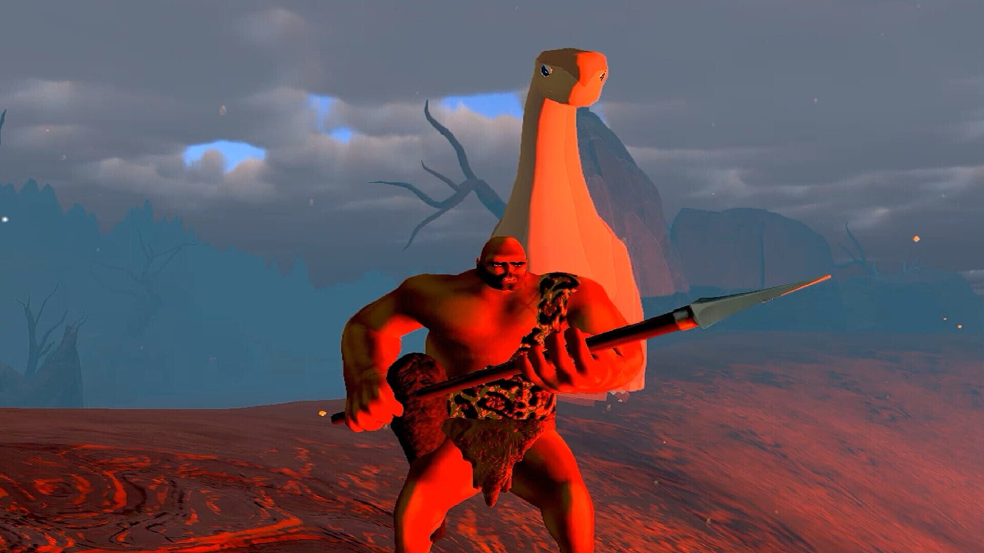 Grand-Theft-DINO! Experience a caveman sim that takes place in a brutal PREHISTORIC OPEN WORLD, where DEATH and DINOSAURS roam! Ride around on DINOSAURS in search of WOMEN and MEAT! Become what the mighty TREX fears and rise to the challenge!