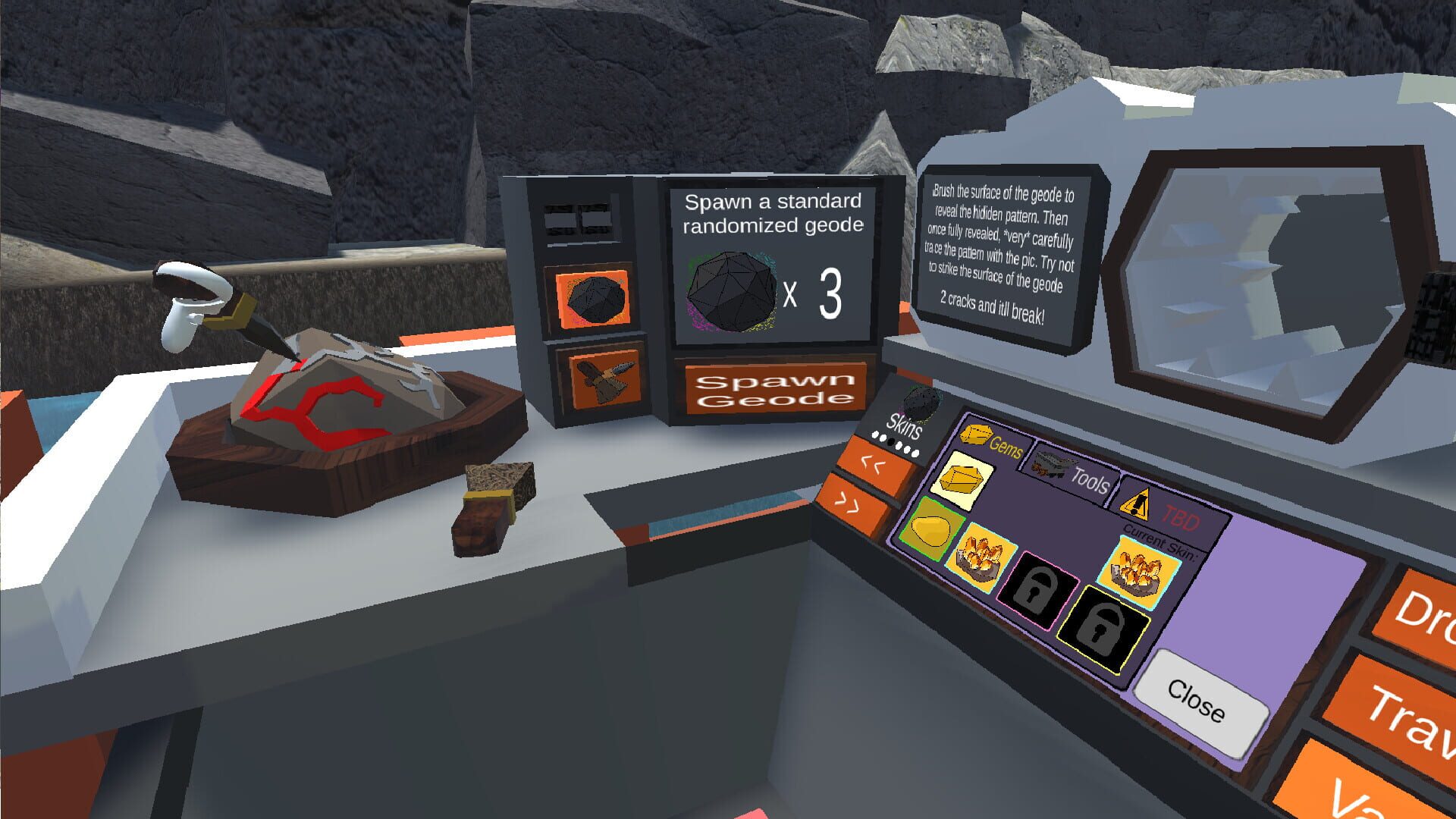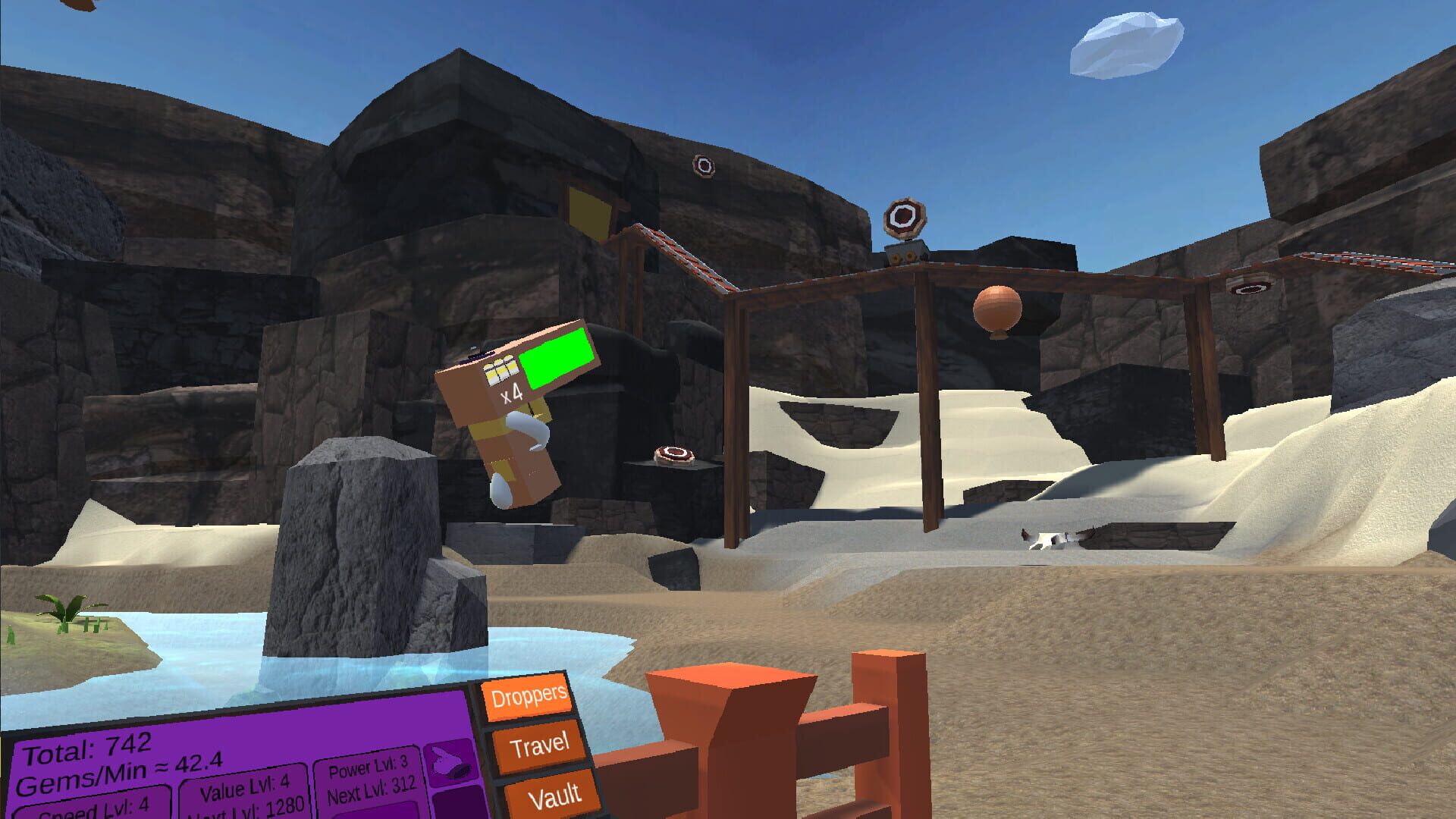 Welcome to Dusty Dunes Tycoon! A VR Gemstone Tycoon game. Unlock and upgrade unique Droppers and explore different areas each with unique attractions. Grab a pickaxe and hit the mines, grab a brush and polish some geodes, or strap up and hit the range, there's much to experience!